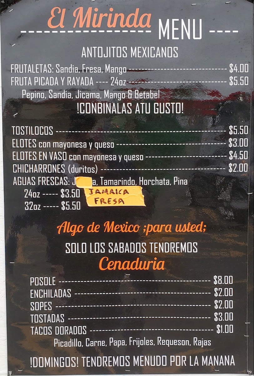 El Mirinda Menu